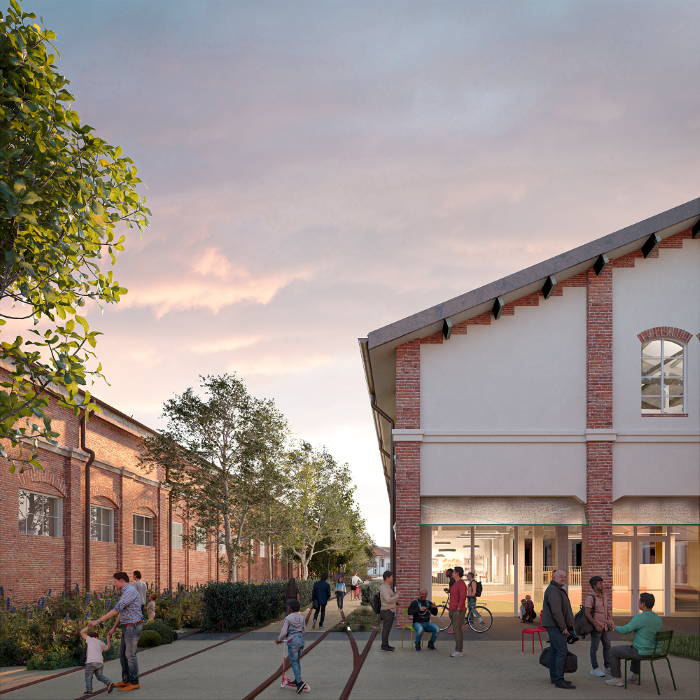 Il progetto interviene su sette edifici principali (6, 7, 8, 9, 12, 16, 19), ognuno con una nuova vocazione in linea con il principio di mutualismo e innovazione sociale. L’Edificio 6 diventerà un centro polifunzionale per eventi, attività culturali e sportive indoor con spazi per il ristoro; l’Edificio 7 – Artown, a seguito di un recupero strutturale e della sostituzione della pesante copertura con una più leggera, ospiterà residenze temporanee e spazi di co-working oltre ad un’importante spazio coperto ma aperto su tre lati per implementare l’offerta degli eventi outdoor; mentre l’Edificio 8, caratterizzato da gradonate quali luogo di socialità e affacci risolti con vetrate dalle grandi ampiezze, sarà sede di laboratori, atelier, bistrot e spazi espositivi. Sarà realizzato in carpenteria metallica; il suo involucro seppur innovativo costituito da un rivestimento di facciata tessile riprende lo stato dei luoghi attraverso l’utilizzo del laterizio a vista; allo stesso modo, la volumetria caratterizzata da una copertura a shed -come alcune architetture del sito- consente l’installazione di un importante campo fotovoltaico. L’Edificio 9, dopo l’alleggerimento della pergola esistente, definisce il perimetro di una quinta urbana aperta e accogliente in prossimità dell’Agorà. L’Edificio 12 sarà destinato a co-working, conferenze e spazi espositivi. Attraverso la riqualificazione dell’attacco a terra del fabbricato, la hall si apre inclusivamente verso uno degli assi viari più importanti del distretto. l’Edificio 16, dedicato interamente allo sport indoor, sarà reso più flessibile e accessibile grazie all’aggiunta di servizi e spazi accessori. L’Edificio 19, sarò oggetto di consolidamento strutturale a seguito di un cedimento basale al fine di mettere in sicurezza la sede di un’attività rilevante all’interno del parco.