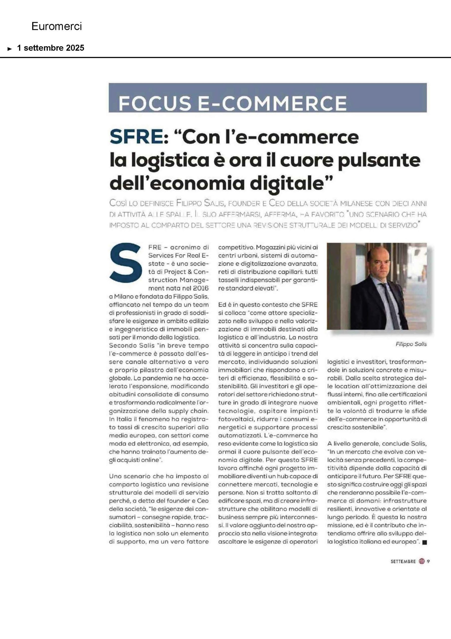30 Set SFRE: “CON L’E-COMMERCE LA LOGISTICA E’ ORA IL CUORE PULSANTE DELL’ECONOMIA DIGITALE” – EUROMERCI, SETTEMBRE 2025 Posted at 12:48h in Rassegne stampa by Nicpr Share Stampa pagina