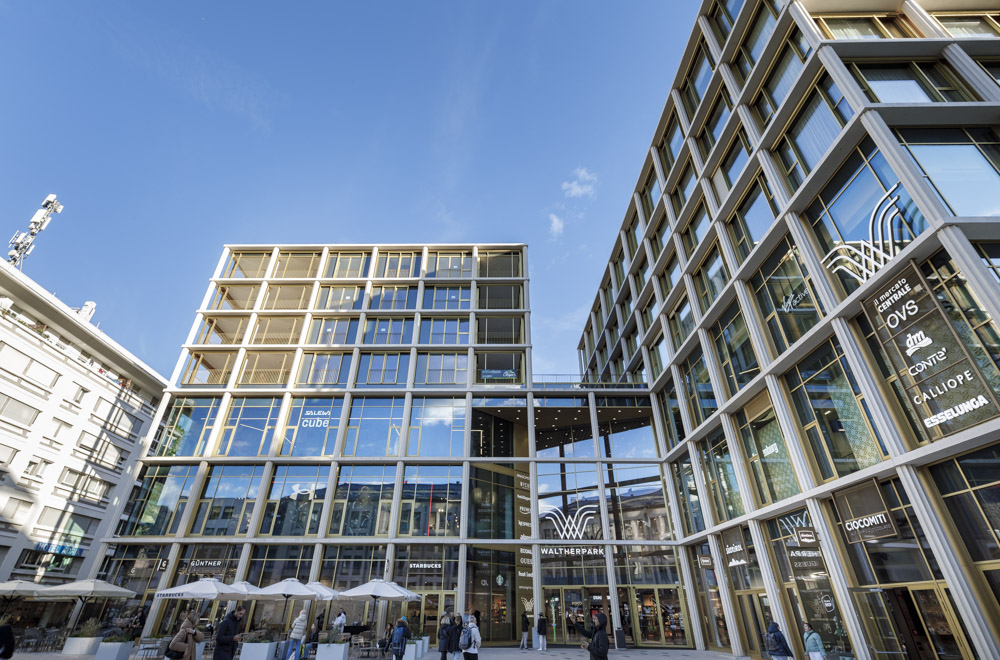 Bolzano – 26 febbraio 2026 – Ha aperto a Bolzano WaltherPark, un progetto multifunzionale che in accordo con il masterplan comunale, ridisegna e riqualifica una vasta porzione di territorio tra la Piazza Walther e la stazione ferroviaria della città. Il nuovo complesso mixed-use, che si sviluppa in oltre 125.000 mq su quattro livelli interrati e otto fuori terra, nasce come intervento di completa riqualificazione urbana: gli edifici preesistenti sono stati demoliti per lasciare spazio a una struttura polifunzionale completamente nuova, articolata in quattro destinazioni d’uso principali – centro commerciale con aree gastronomiche e retail, hotel, uffici e residenze. Il progetto, frutto di un complesso piano di sviluppo messo a punto da WaltherPark S.p.A. , ha coinvolto molteplici attori, tra cui vari studi di progettazione: F&M ingegneria si è occupata di pilotage cost, project e construction management; David Chipperfield ha curato l’involucro architettonico, comprese facciate e volumi che per le loro caratteristiche di chiarezza e oggettività si inseriscono armoniosamente del concetto urbano complessivo; Saguez & Partners ha progettato gli interni e le parti comuni del centro commerciale, mentre ogni negozio ha sviluppato autonomamente il proprio concept. Per le altre funzioni (hotel e residenze) sono stati coinvolti ulteriori progettisti specialisti.