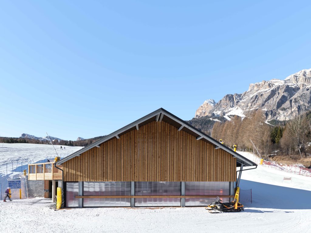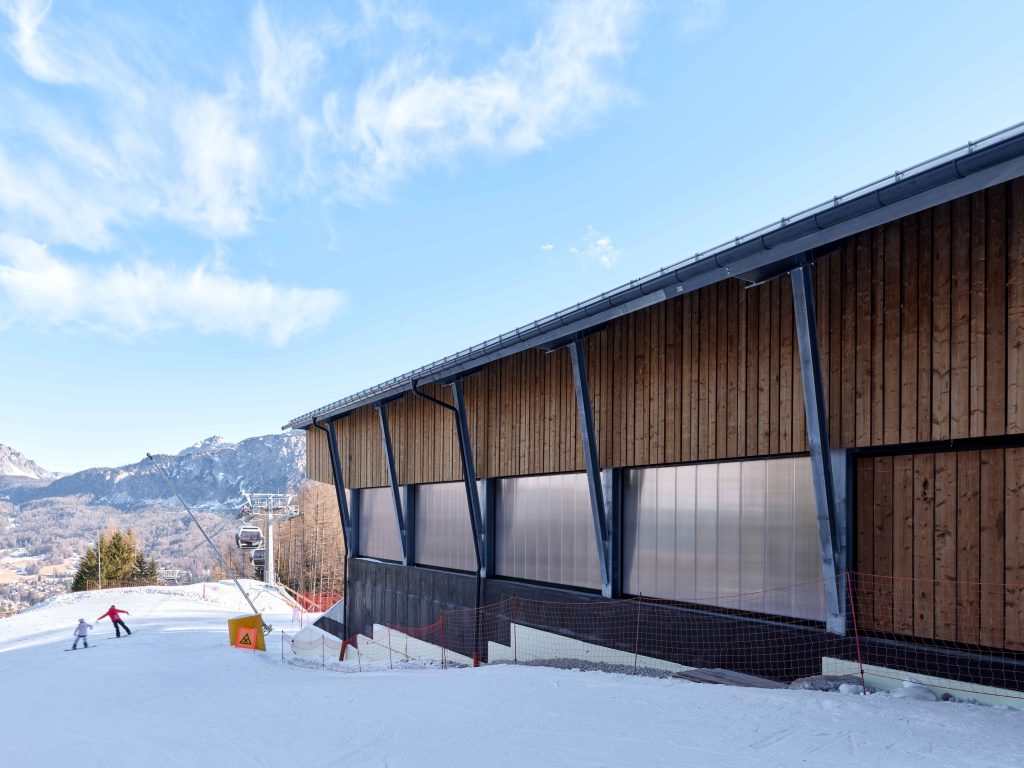 Nell’ambito di questo importante rinnovamento, ISTA spa, la società committente che gestisce gli impianti di risalita di tutto il comprensorio, ha affidato allo studio Gris+Dainese Architetti, che opera da tempo nel territorio, la progettazione architettonica delle due stazioni di partenza e arrivo della nuova cabinovia ai piedi della Tofana che sono state inaugurate a dicembre 2025.