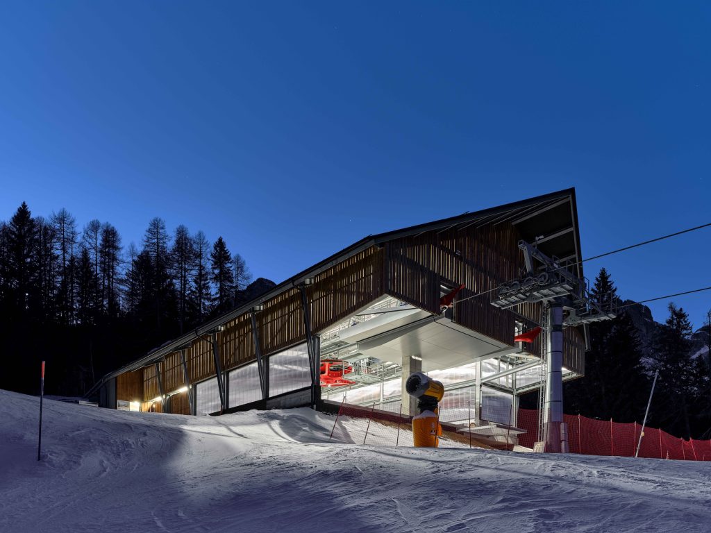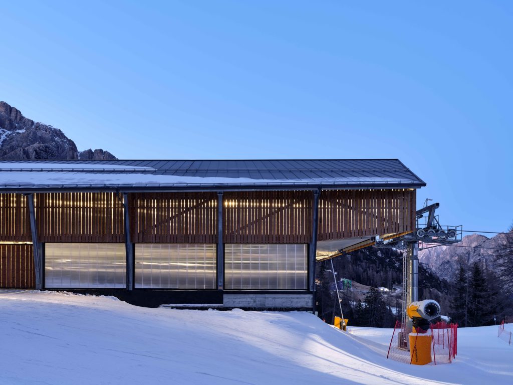 Prestazioni, luce e dialogo tra policarbonato, legno e paesaggio per le nuove stazioni di risalita nel cuore delle Dolomiti
